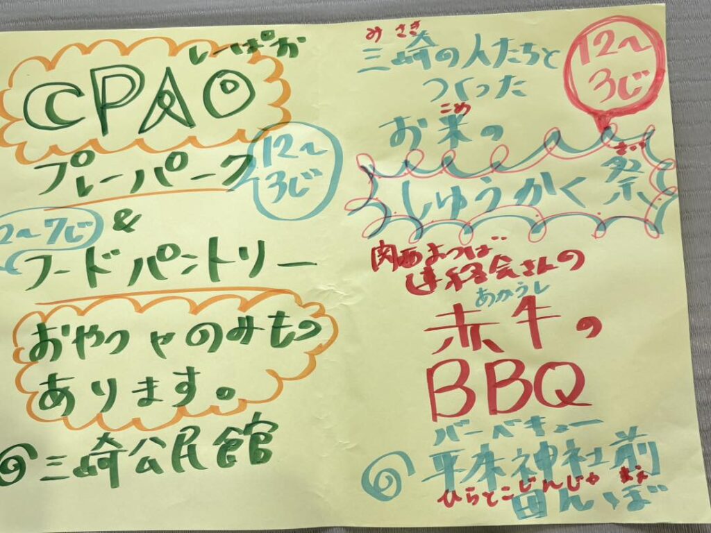 さらに、関西よつば連絡会さんから提供いただいたお肉や野菜でBBQを行い、地域の人たちと食卓を共にしました。都会の「孤育て」とは違い、珠洲では不便さを補うために助け合うことがあたりまえです。その体験は、大阪に住む私たちは「支え合って生きる大切さ」を実感する学びの機会となっています。