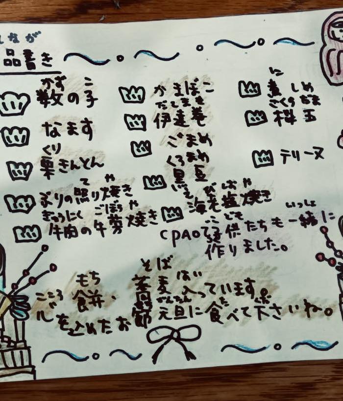 今年も、子どもや若者、ボランティアの方々と一緒に、手作りのお節を作りました。