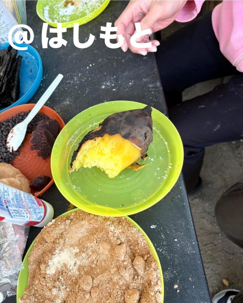 焚き火を囲み、どんど焼きをし、焼き芋を焼いたりもしました。