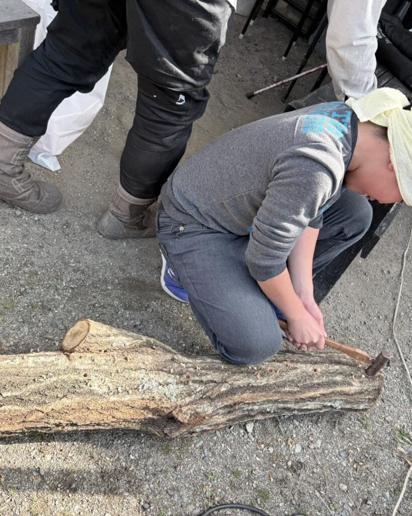 原木しいたけづくりにも、子どもたちも一緒に取り組んでいます。